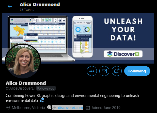 Alice is the Co-Founder of DiscoverEI, an environmental analytics consultancy in Australia whose mission is to transform environmental data into decisions! Alice holds an MSCA in BI Reporting, and her passion is combining Power BI with graphic design and computer animations to bring environmental data to life. Drawing on her background in environmental engineering, Alice works collaboratively with government organizations to turn mountains of data into practical, useful, decision-guiding insights. As a newly appointed Microsoft Certified Trainer, Alice has just launched a Power BI training program specifically tailored for the environmental industry, to help train the next generation of environmental data warriors!