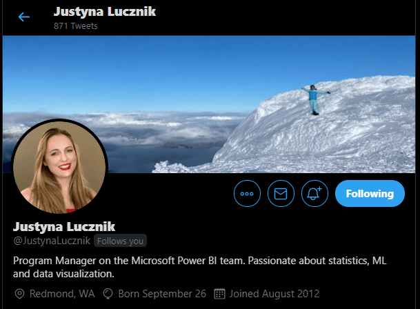 Justyna Lucznik is a Program Manager for the AI features of Power BI. She has worked on AI visualizations like the decomposition tree and key influencers. Previously she worked on Power BI solution templates.