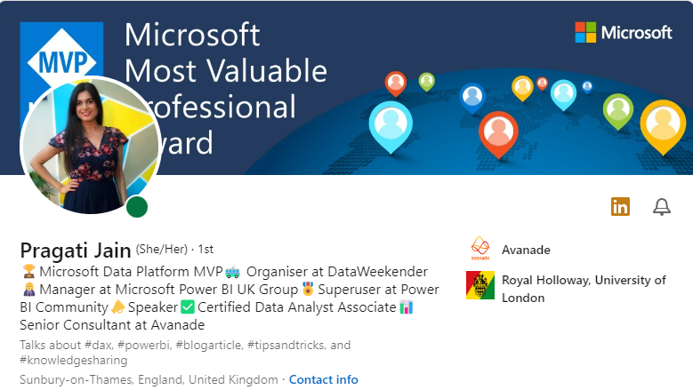 Pragati loves being active in the community and is also one of the Superuser’s on the Microsoft Power BI Community, where she is passionate about helping others with their Power BI related queries. She strongly believes in giving back to the community in every way she can. Being working with Power BI for last couple of years, her interest lies in generating stories out of the data, and making these stories easy to be absorbed by the customers.